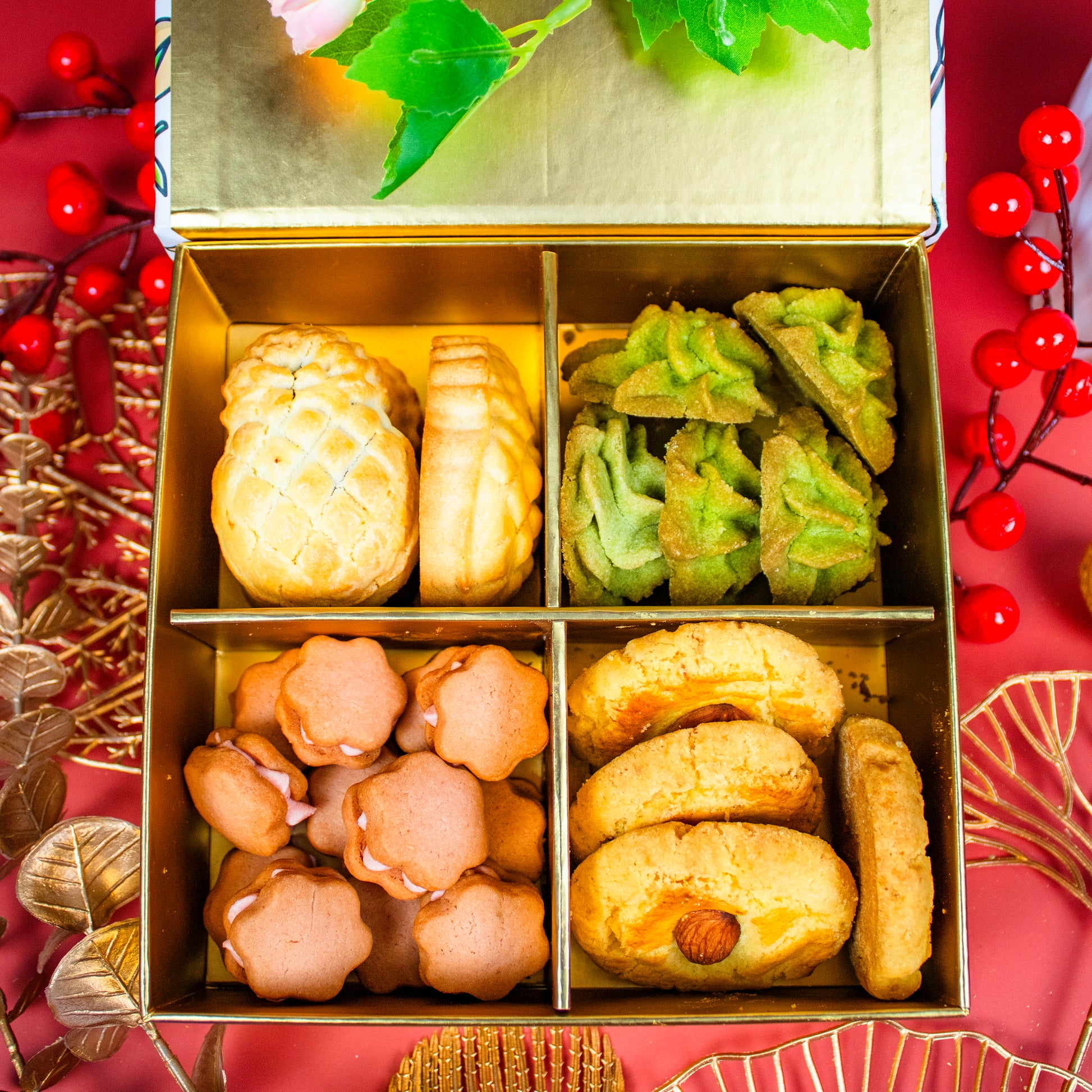 Celebrate Lunar New Year with a luxurious assortment of handcrafted cookies, perfect for gifting or indulging. This box features four different creations.