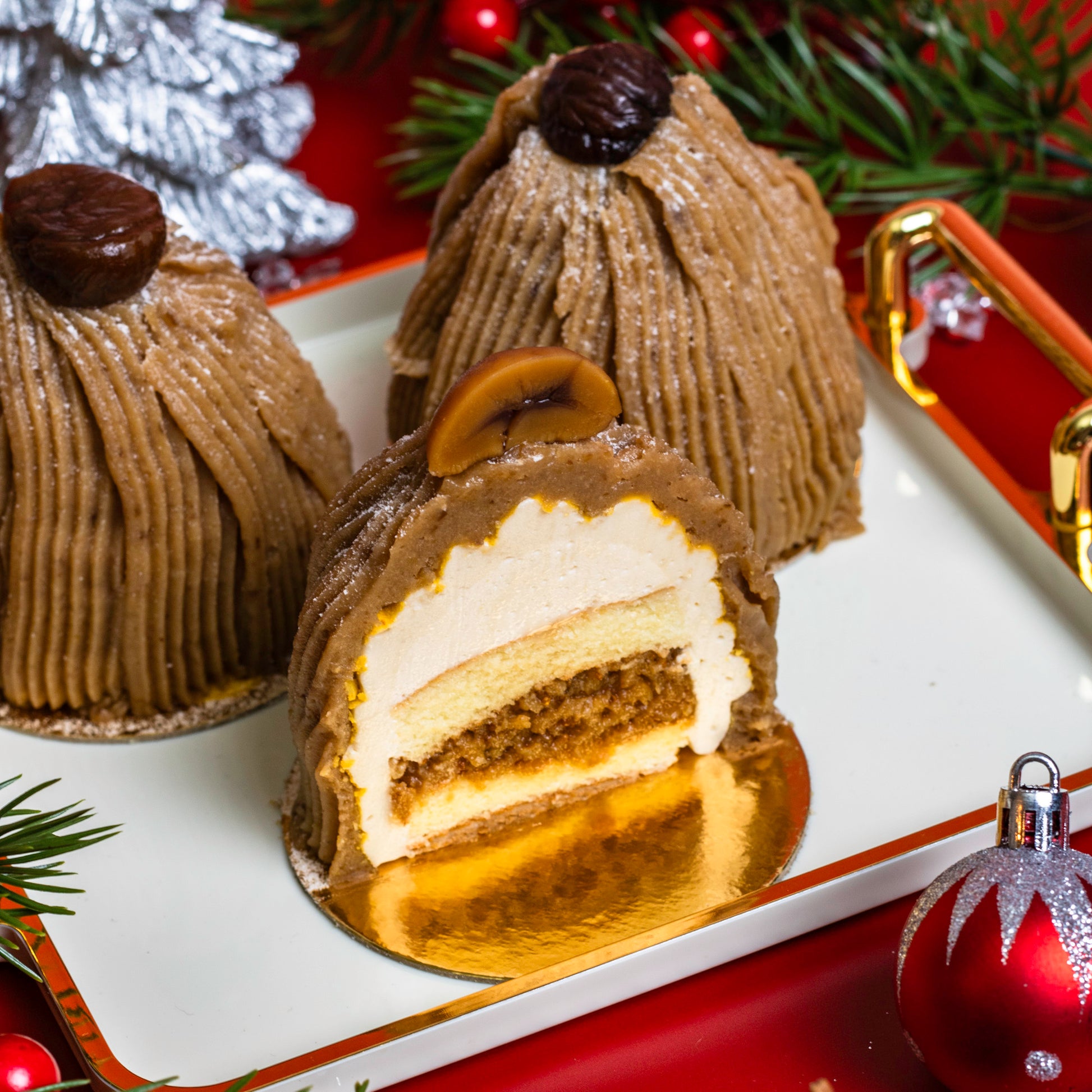 Limited quantities available starting Dec 1st. Note: flavour is different from our Mont Blanc Signature Cake.