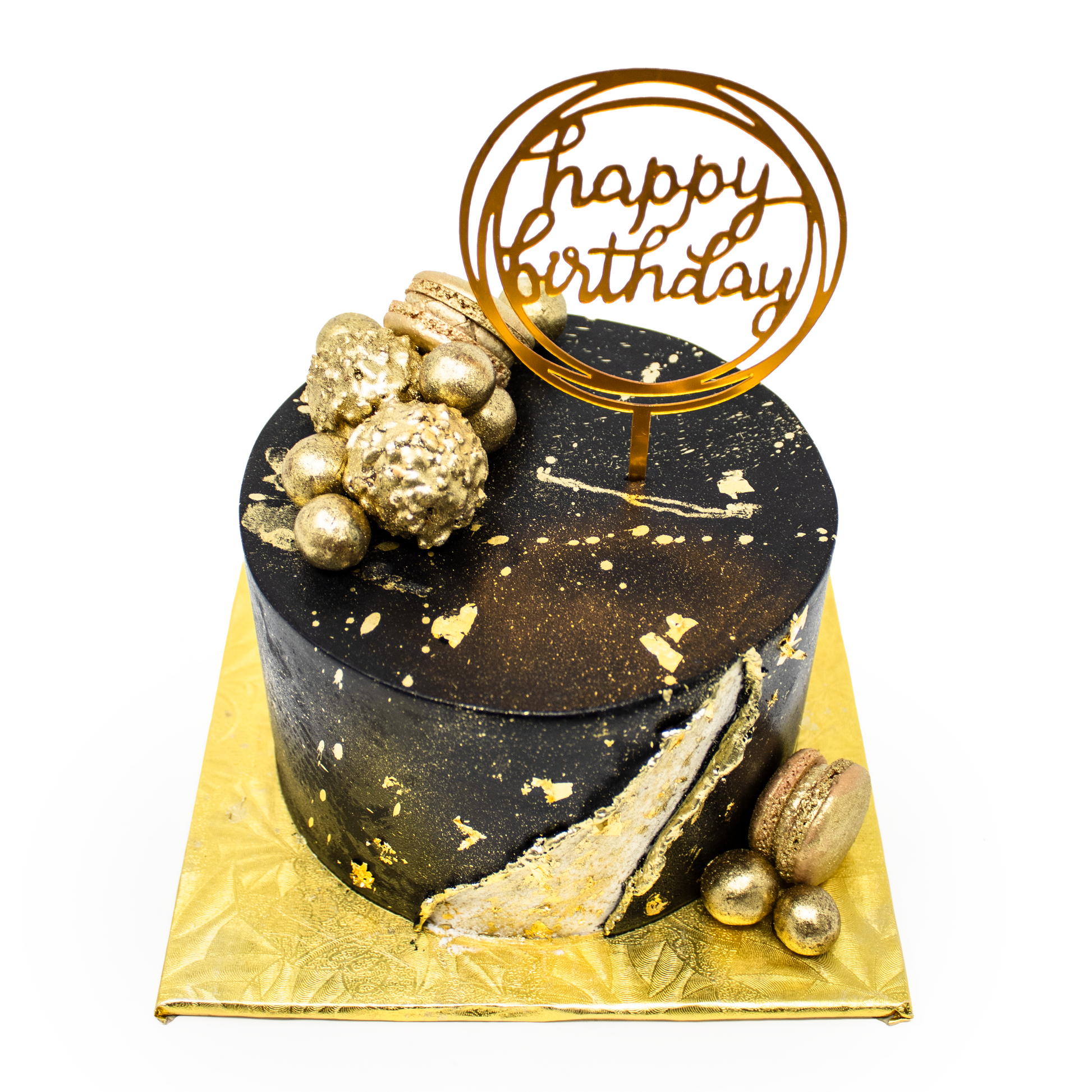 Make a statement with sleek sophistication! Our Black & Gold designer cake theme adds a touch of glam to any of our signature cakes, featuring a dramatic palette of deep black and shimmering gold accents. Perfect for luxe celebrations, milestone moments, or anyone who loves a little sparkle with their slice!