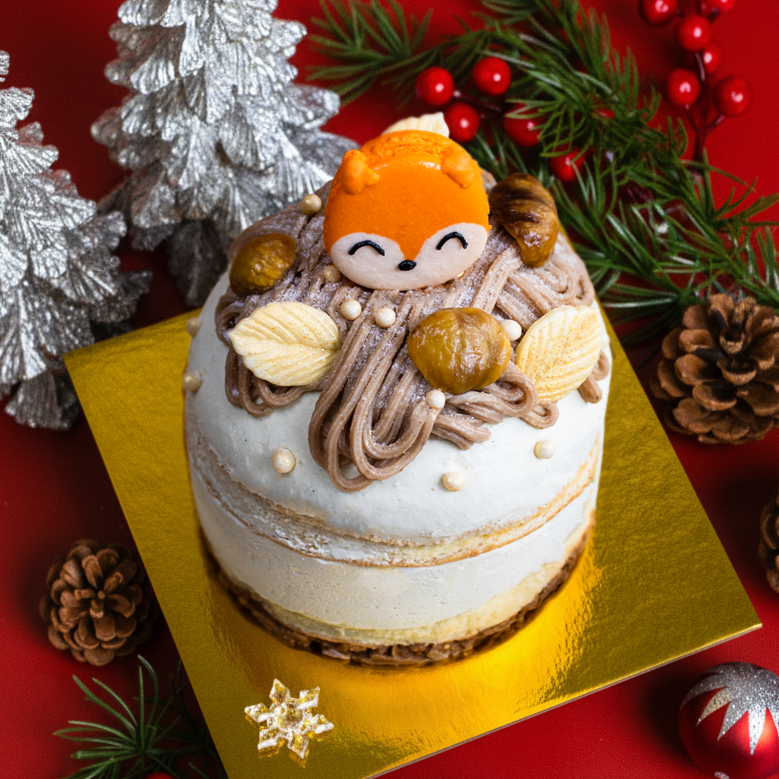 成分: 烤栗子蓉、茉莉花鲜奶油、牛奶麻糬、香草戚风、黄豆粉脆底